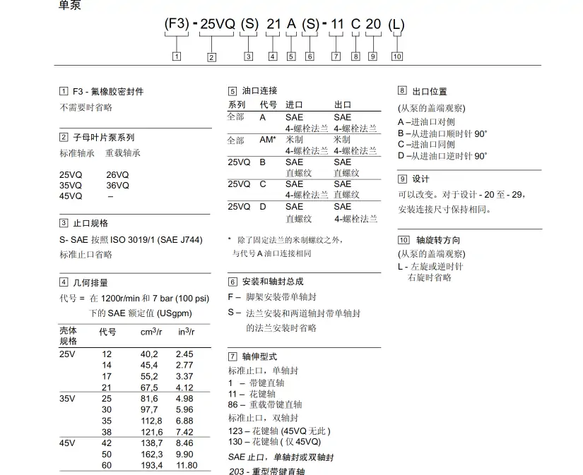 SAMEK太重榆液葉片泵20VQ/20V-2/3/4/5/6/7/8/9/10/11/12/14-1CR